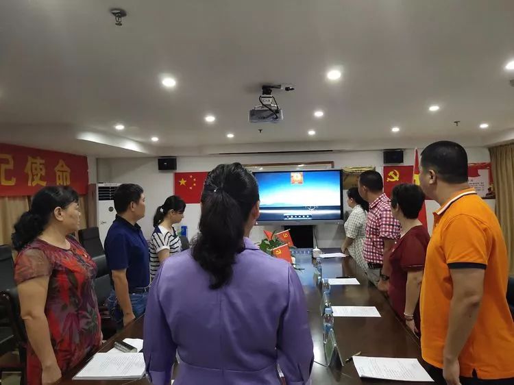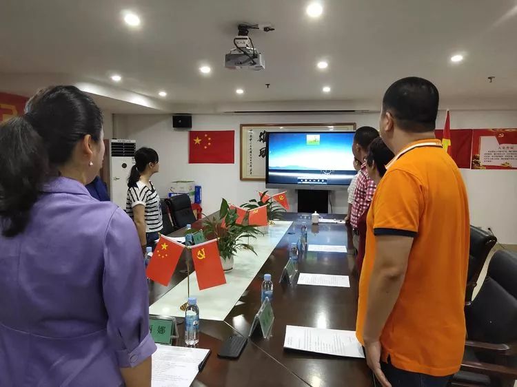 9時(shí)35分,支部大會(huì)在莊嚴(yán)肅穆的中華人民共和國國歌聲中正式開始。全體人員一起高唱國歌。